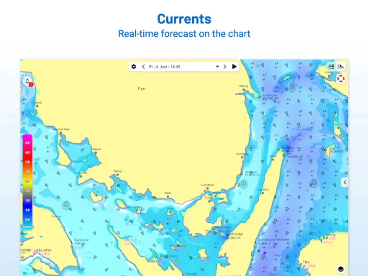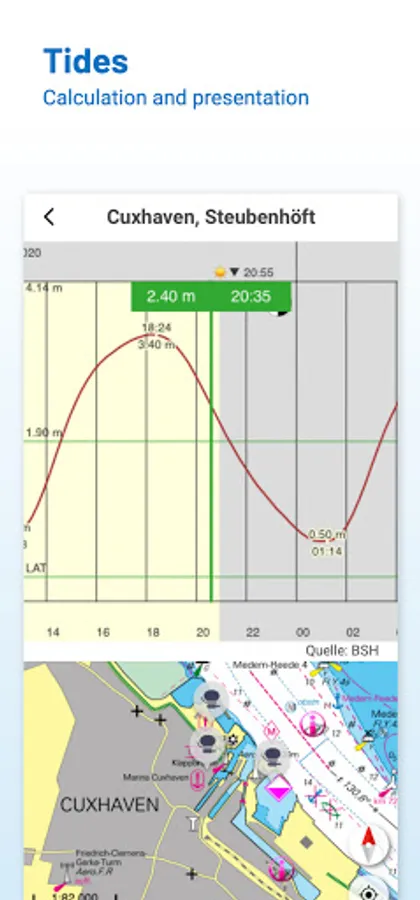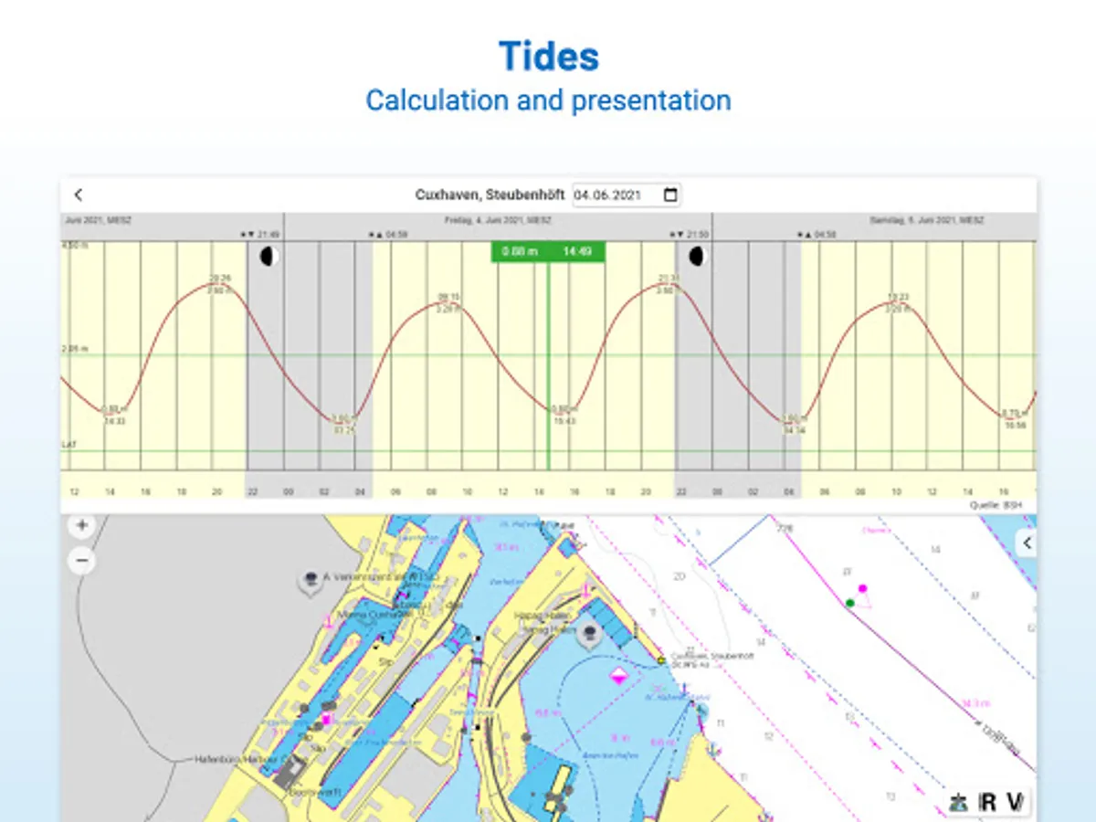 If it is not yet clear where the journey is going to take you, free online charts can be displayed in the app, even without a current subscription or valid paperchart edition.