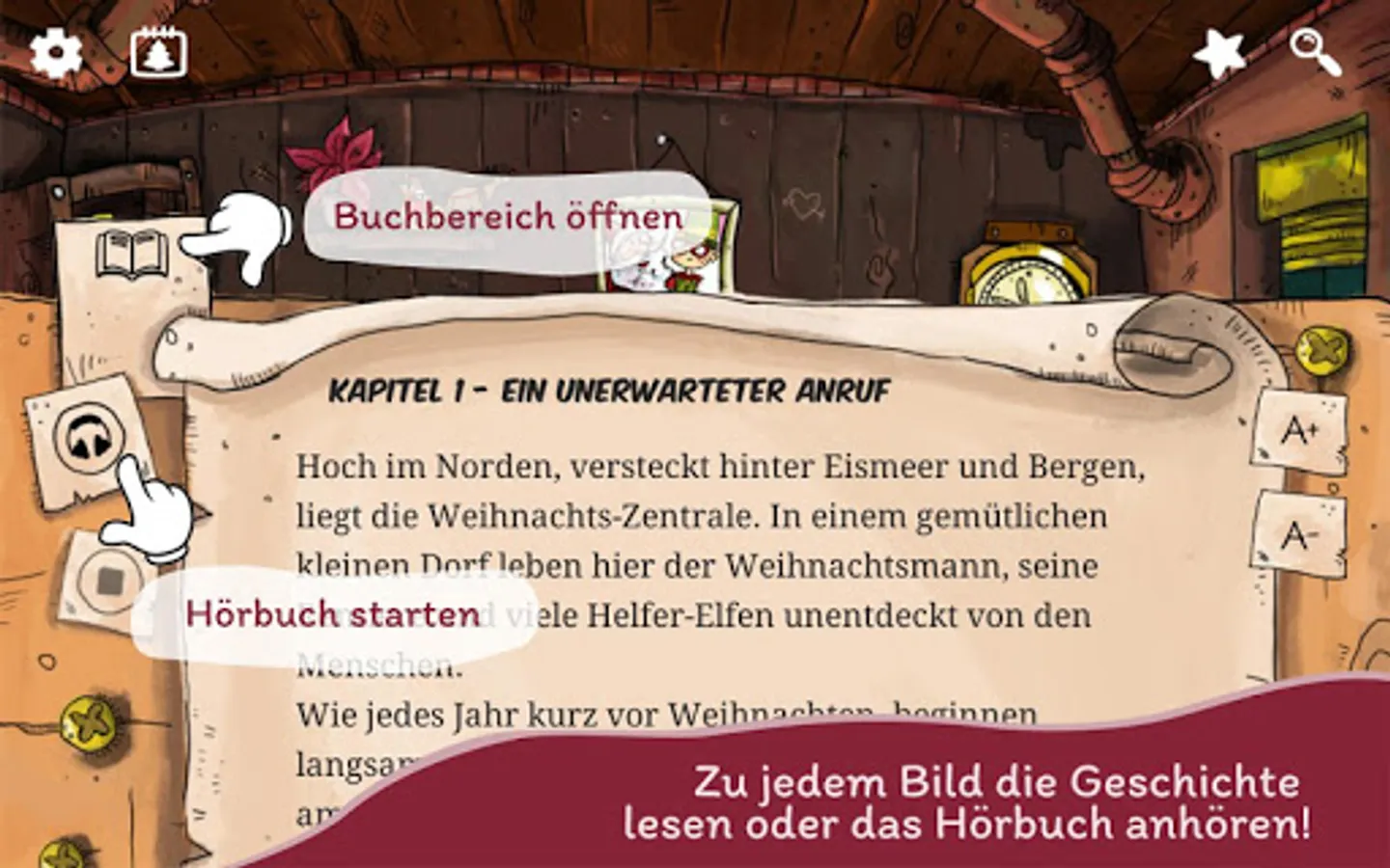🎄 Your exciting advent calendar with a funny Christmas story and colorful pictures to type and discover. Have the audio book read to you by the great Santa Claus voice, or read the story as a book. Solve a little puzzle every day. For children and the whole family.🎄