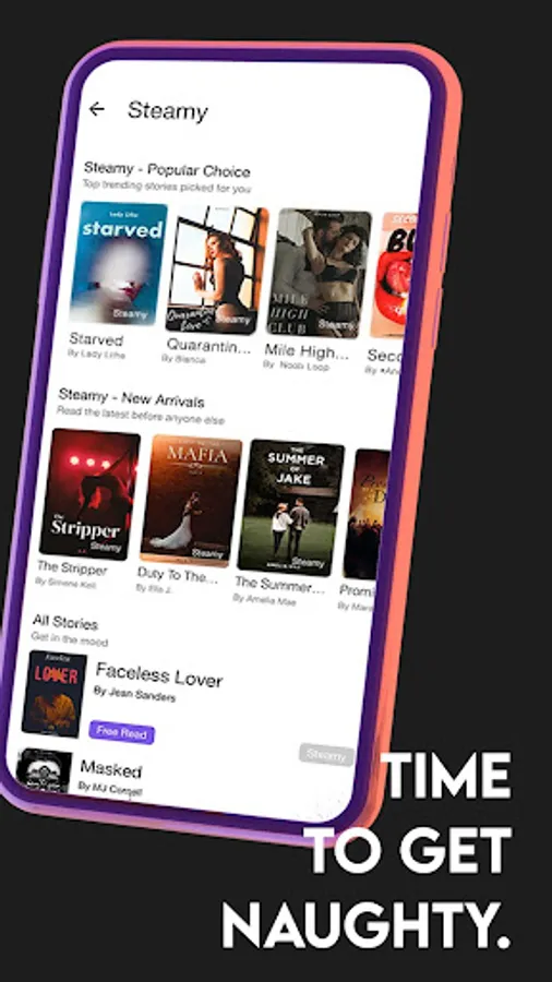 - steamy/naughty stories: hot, sexy stories to take you on a fantasy ride,