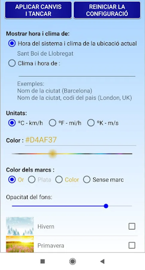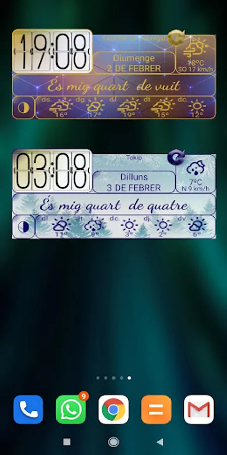 Home screen Widget with a digital clock and hour description in catalan.