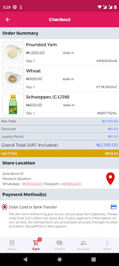 • Secure payments — Pay with your debit card, wallet balance, or loyalty points.