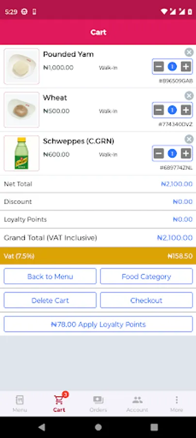 • Loyalty points — Redeem points for free meals, discounts, or partial payments.
