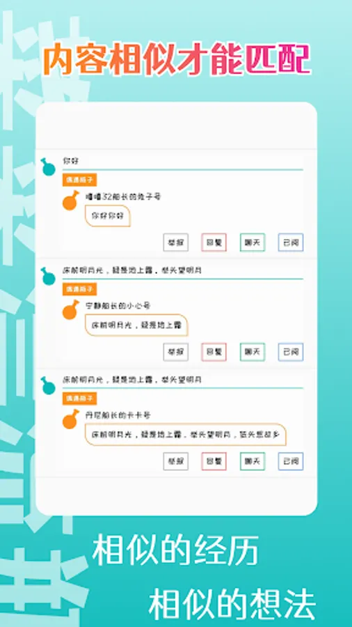 This is a drifting bottle tree hole software that only matches and publishes the same content as yourself.