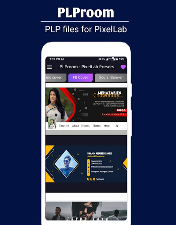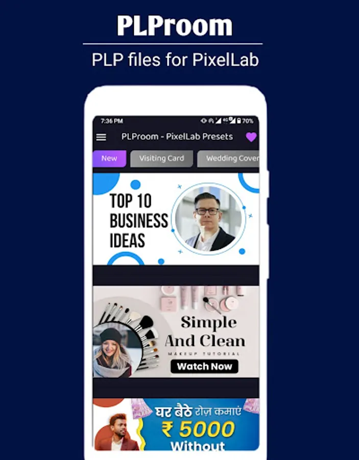 PLProom is a very easy-to-use application for getting Unlimited free PLP files for the PixelLab app. We provide a guide video in our app to learn how to use PLProom to Edit your Photo or Make your Poster or Flyer with PLProom, PLProom is a great app to save time and make your creative design quickly.