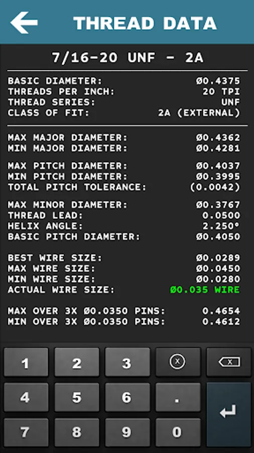 * 60° Threads (Pitch Ø, Minor Ø, Major Ø, Helix, Lead, etc.)