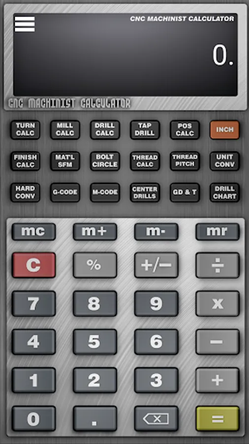 CNC Machinist Calculator Pro is a machining calculator designed for manufacturing engineers, machinists, CNC operators, tool & die makers, and at home hobbyists. CNC Machinist Calculator Pro is great for CNC programmers or machine operators who need to make quick calculations on the fly. It's also a great tool for quoting new work. Visit www.cncdirt.com for more info
