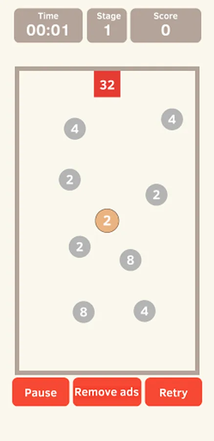 Match the numbers to the one red square target on the stage and hit it to clear the stage.