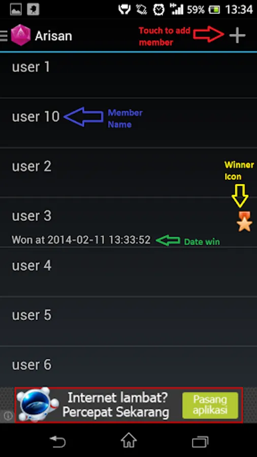 Arisan is known as family social gathering. Every member of Arisan collect the money and choose a winner every period such as month or week. The member can only win once.