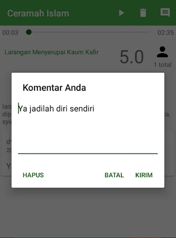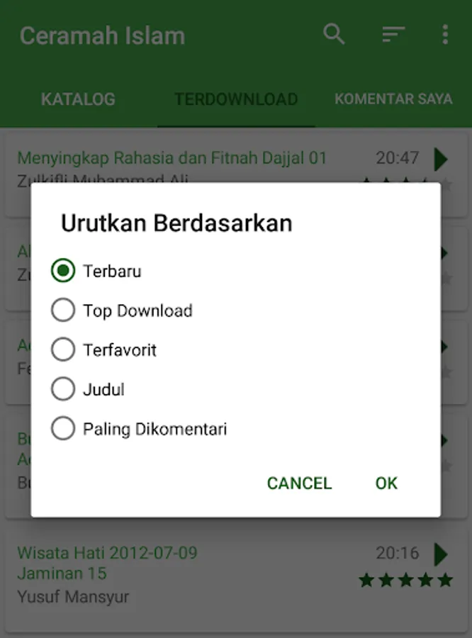 Download rekaman ceramah kemudian dengarkan ceramah secara offline.