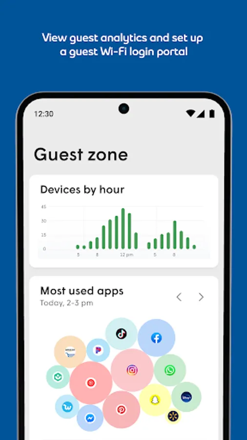 • Guest Wi-Fi Zone: View visitor insights and analytics, and create your own Guest Wi-Fi login portal customizable to your brand