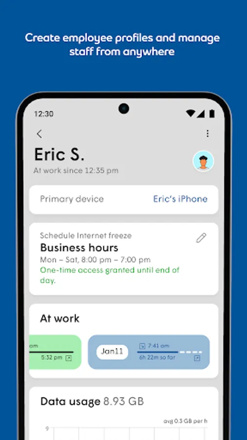 • Employee Wi-Fi Zone: Create individual employee profiles, leverage engagement and productivity tools, and manage network access