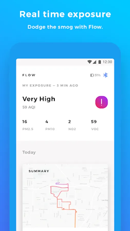 Avoid the most polluted places: Flow tracks air pollution variations around you in real time, so you can find clean air.