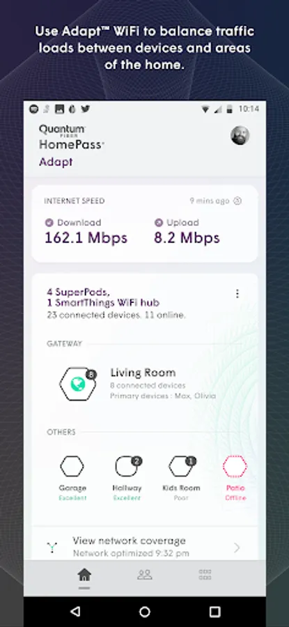 The Quantum Fiber 360 WiFi app, powered by Plume, makes staying connected to your connected world even simpler. Set up and manage your 360 WiFi Pods using your smart phone and stay connected seamlessly in every room, on any device. You call the shots with just a few taps.