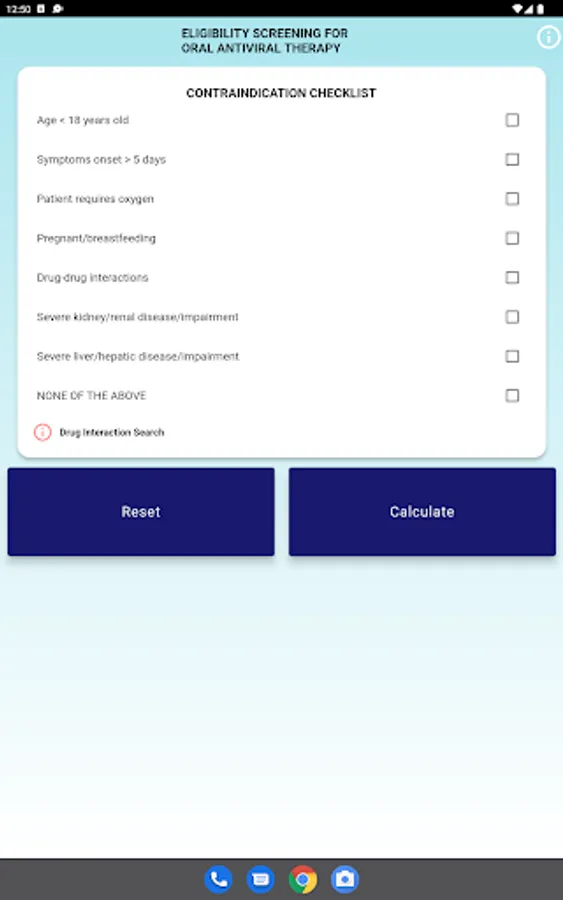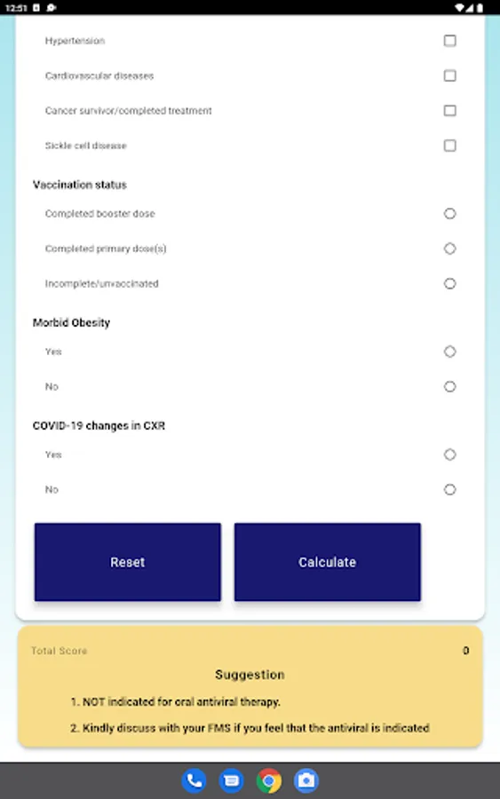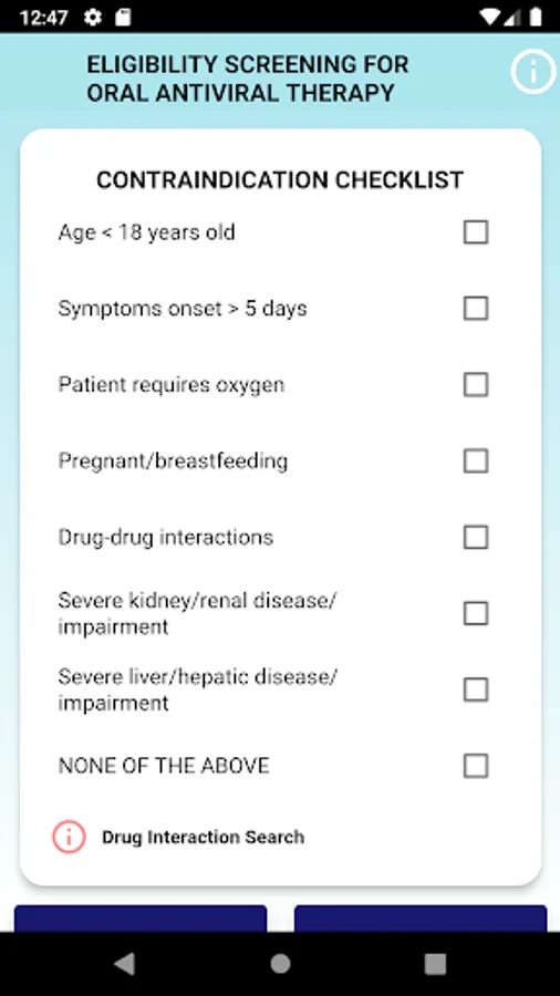 This is an app designed to provide a quick and accurate reference source for medical officers in accessing the eligibility to initiate oral antiviral therapy among the potential candidates. It facilitates the medical officer to provide optimal treatment according to the latest national guidelines, hence prevent serious complications from severe illness.
