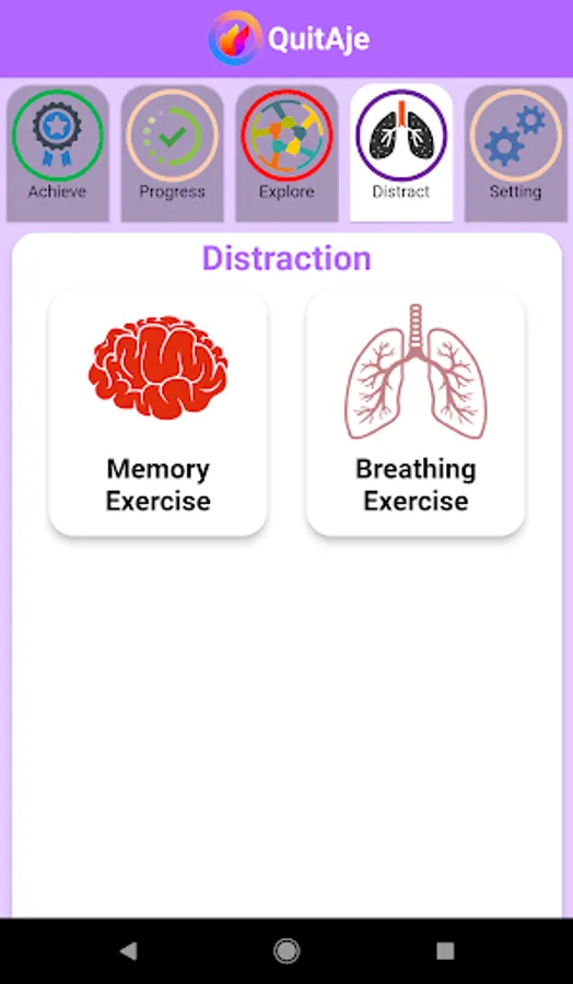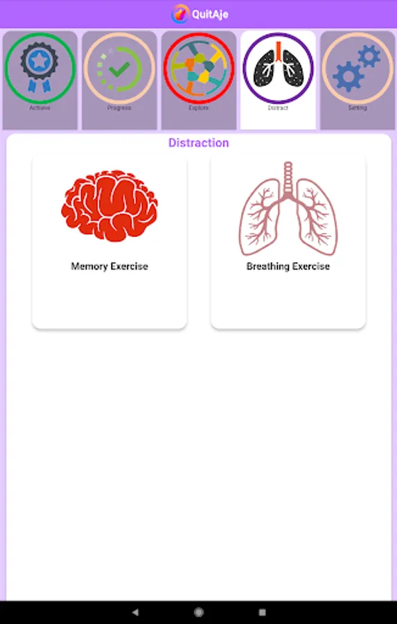 QuitAje is also designed to help distract you from the urge to smoke with a variety of engaging and entertaining features, including games, and guided breathing exercise.