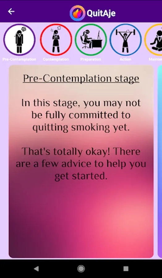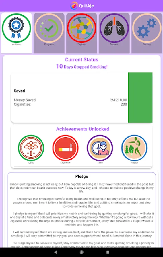 Whether you're just starting on your journey to quit smoking or you're looking for additional support and resources, QuitAje, as a self assistant quit smoking app, is here to help you every step of the way.
