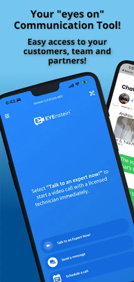 Quickly chat with a DIY Expert or scan a QR code that is given to you to instantly connect and communicate via chat or video. EYEnstein™ is being used as an "eyes on" tool for Plumbing, Electrical, Real Estate Management teams and AV Groups to easily communicate with customers and their teams.