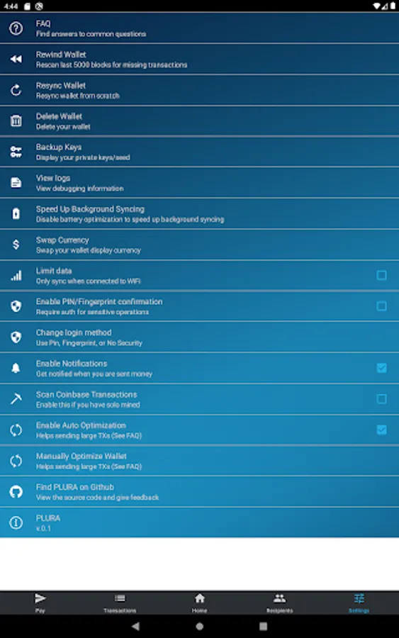 PLURA / PluraCoin native mobile wallet with many functions - automatic background synchronization, allows you to send and receive PLURA transactions, displays notifications on incoming PLURA payment. The wallet can be secured by PIN and/or fingerprint. You own the wallet private keys - nothing is stored or sent to the server. This is a light wallet - the blockchain isn't stored locally but rather accessed remotely via API.