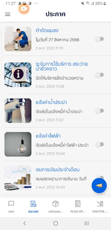 which includes features such as Chat with residents, create new announcement, and parcel management function.