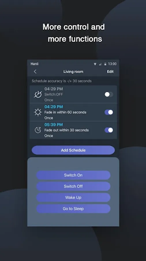 • Interworking of multiple smart devices. Devices automatically start/stop working based on temperature, location and time.