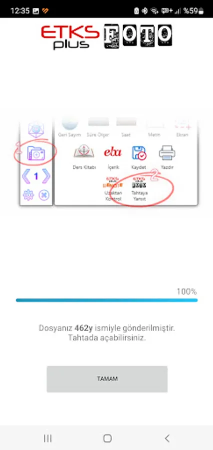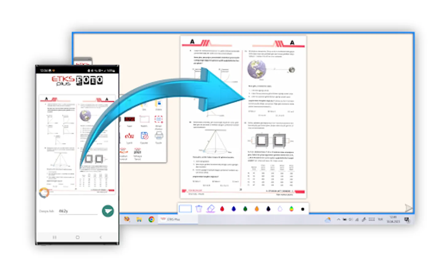 It allows you to send photos and PDFs from your mobile phone to boards loaded with "ETKS Plus". You can take a photo of the resources and send them to the smart board for questions and lectures. You can download the smart board software from www.etksplus.com.