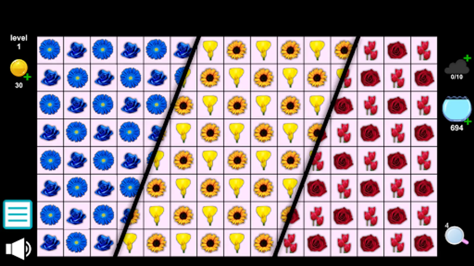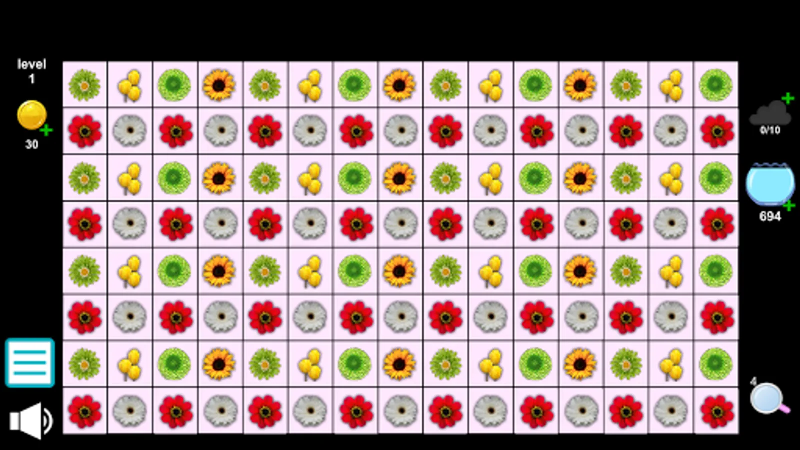 - Remove 2 flowers with the same kind which can be connected within 3 lines before time runs out.