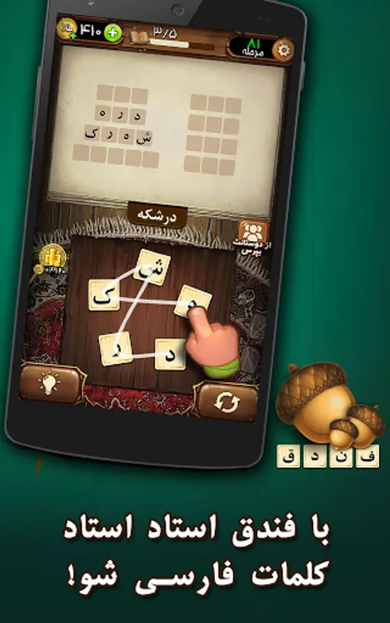 The hazelnuts are waiting! If you are looking for a word game for boys or girls or you want a cool new game and you have a lot of skills in an intellectual game like Amirza and Quiz F King, and wherever you are, whether in the subway or Snap and Tepsi, you can play the game and make a bag. . Get started now and get help from your friends on social networks like WhatsApp, Telegram and Instagram.