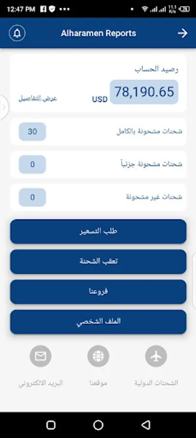 With love, this application was implemented for the benefit of Al-Haramain International Shipping Company, so that Al-Haramain customers can follow the following things directly on their phones: