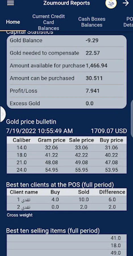 This application is connected to the Zoumroud Gold Accounting Program, which is intended for our valued customers to keep abreast of all their daily reports (balances - sales - purchases) of gold and cash that they receive in the company.