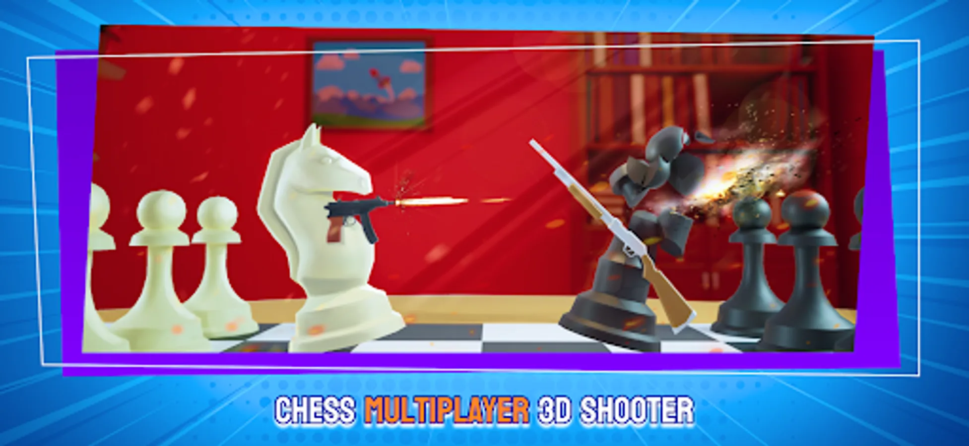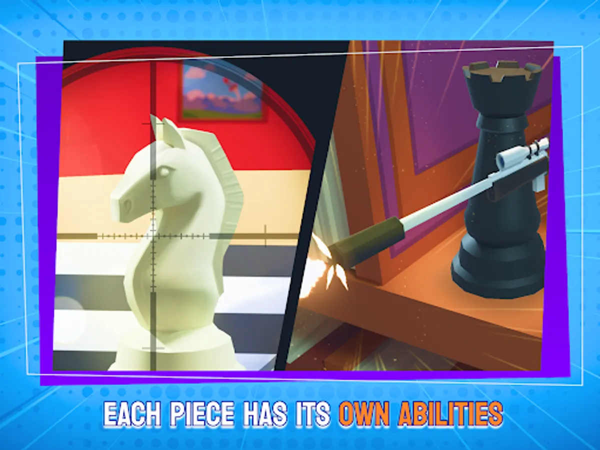 Are you ready to try unforgettable rapid-fire combat with your friends or random players all around the world? Chess Shooter 3D invites you to explore an unprecedented gaming experience where victory depends on your ability to outshoot your opponents!