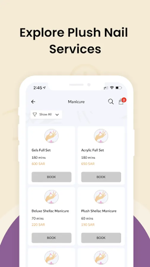 The Plush nail application allows customers in Saudi Arabia to select nail services and book the day and time in a very easy and flexible way