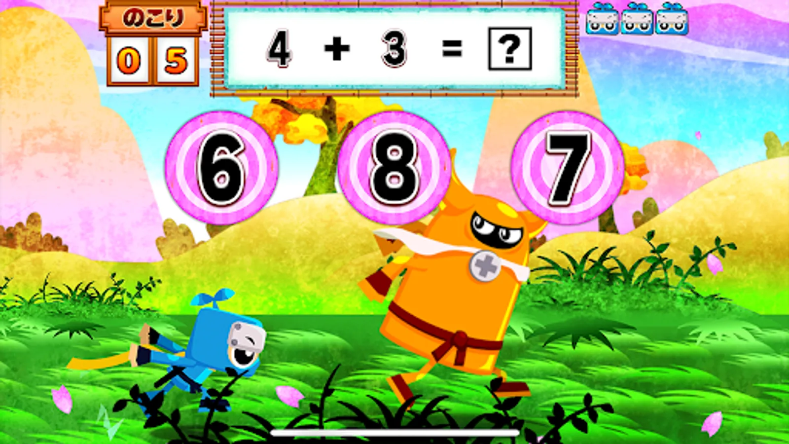 "Arithmetic Ninja-Addition and Subtraction Volume-" is full of mechanisms that allow children to learn addition and subtraction while having fun as if playing a game. Perfect for children who are not interested in studying. It is also a review of addition and subtraction learned at school. The game is an educational app that is safe for fathers and mothers who are anxious.