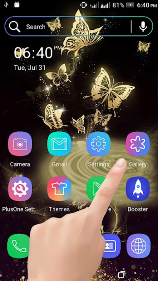 - This Gold Butterfly LiveWallpaper has Particle effects on Touch with Water Ripple animations also ,Use your fingers to move cool watter ripple waves & gorgeous particles on you desktop,You can control settings from PlusOne launcher settings.