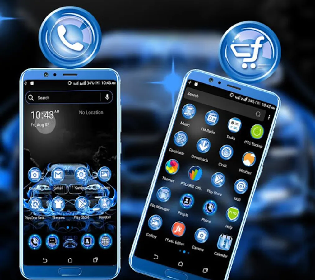 •Different launcher (icon packs) - Cool Blue Car HD Icon packs within theme to change the whole look of your phone Blue Car Theme,Icon pack of mostly used system apps, social chat app & other utility icons packs that suits with this Blue Car Launcher Theme.