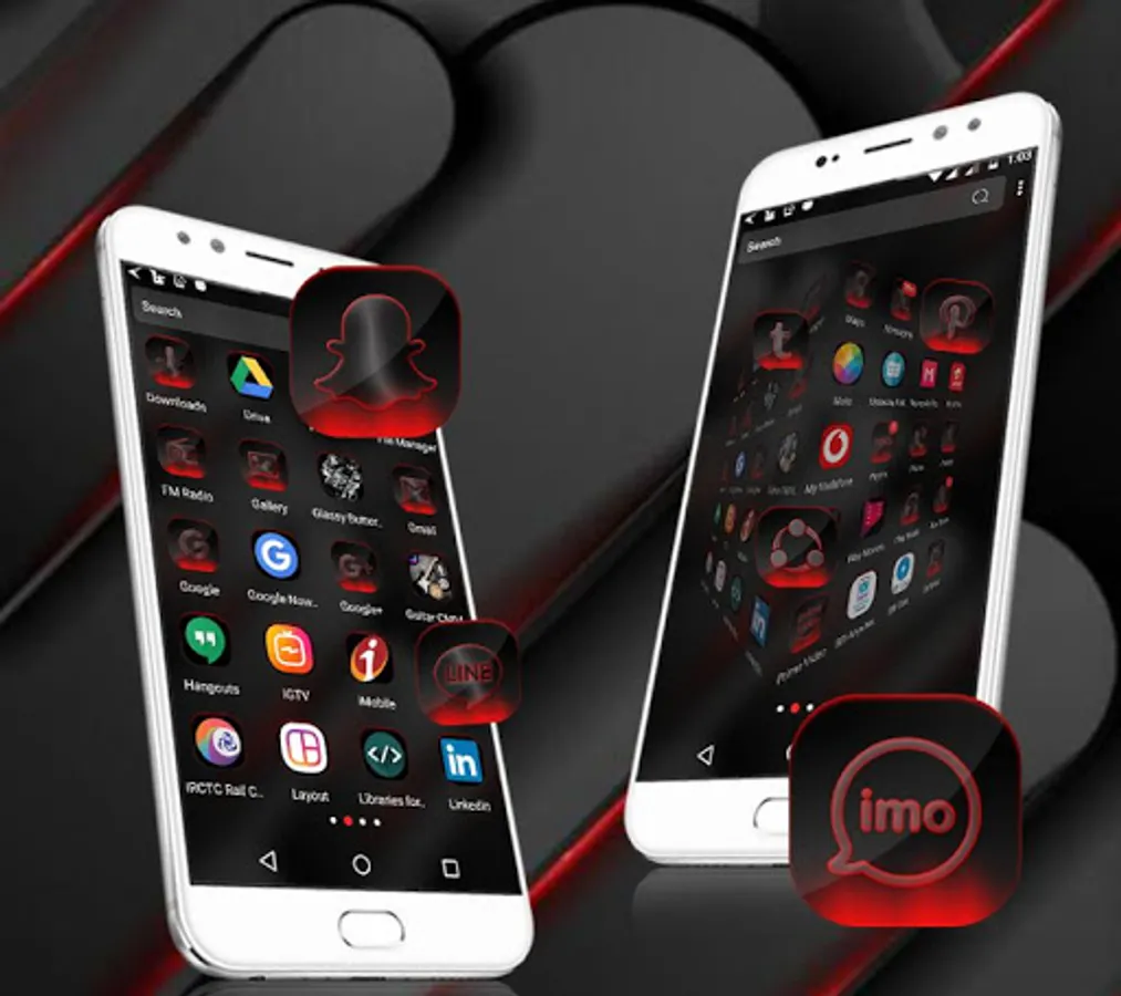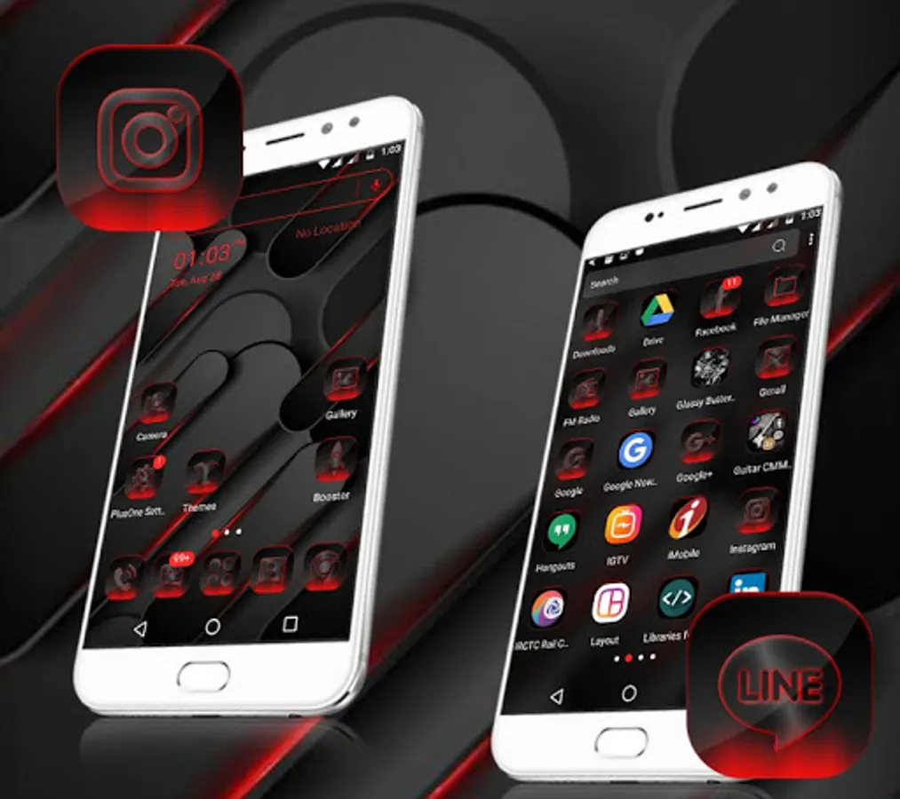 •Different launcher (icon packs) - Cool Cool Black HD Icon packs within theme to change the whole look of your phone Cool Black Theme,Icon pack of mostly used system apps, social chat app & other utility icons packs that suits with this Cool Black Launcher Theme.