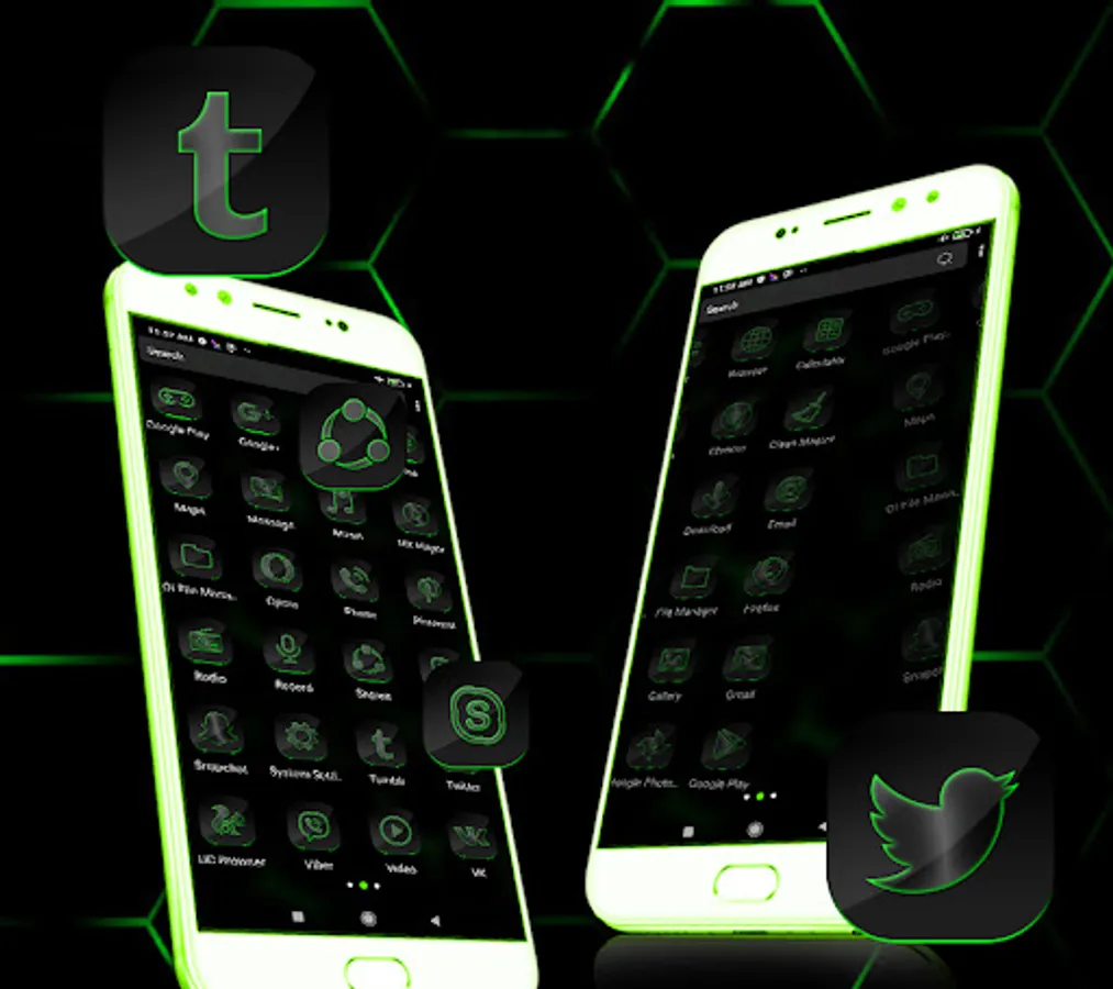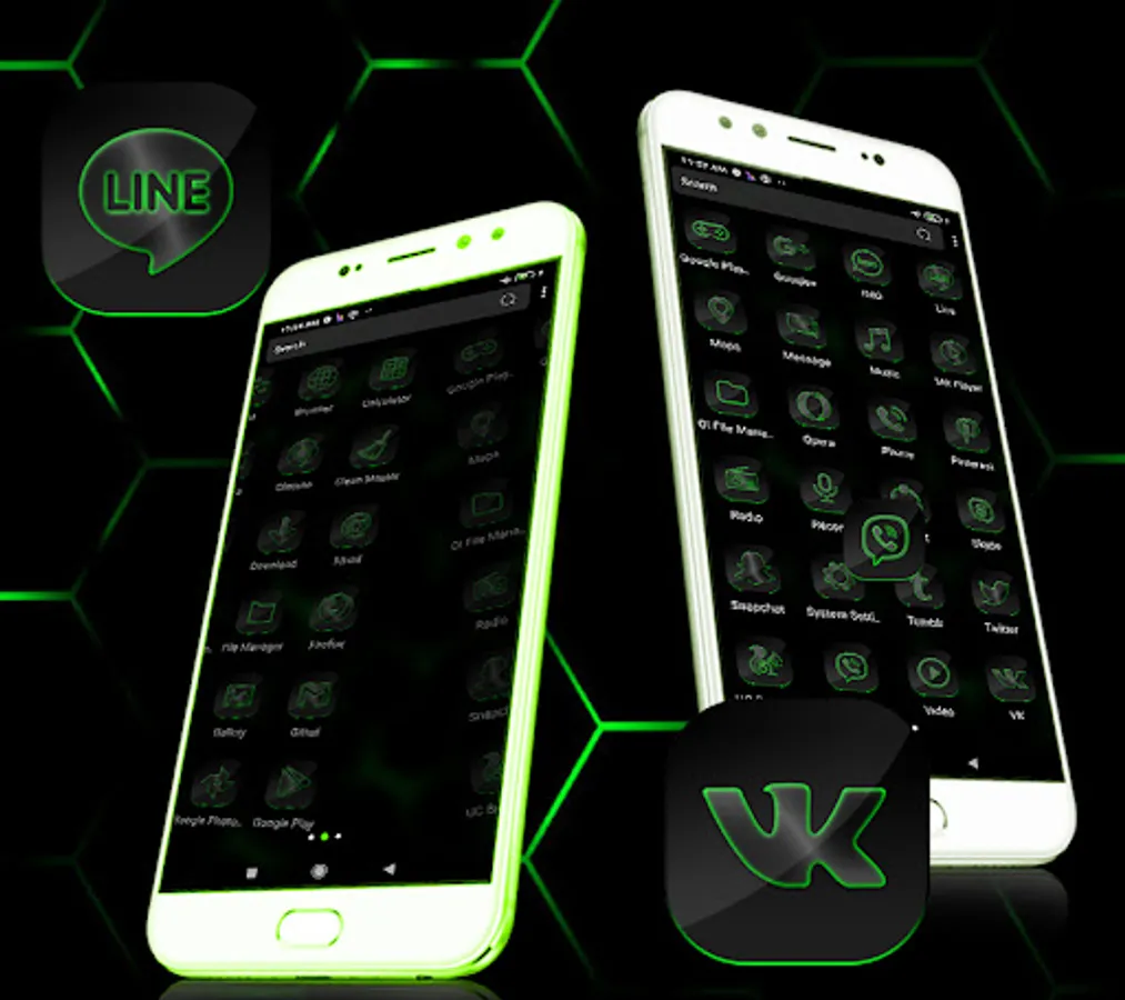 •Different launcher (icon packs) - Cool Cool Neon Green HD Icon packs within theme to change the whole look of your phone Cool Neon Green Theme,Icon pack of mostly used system apps, social chat app & other utility icons packs that suits with this Cool Neon Green Launcher Theme.
