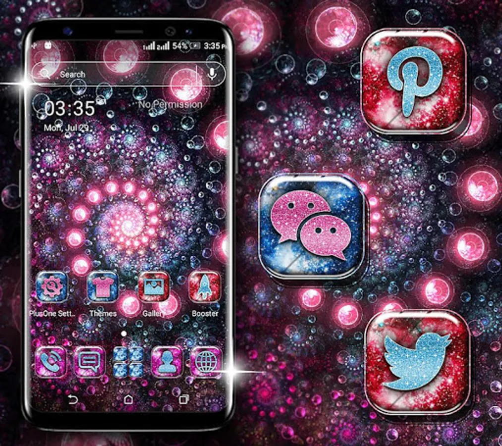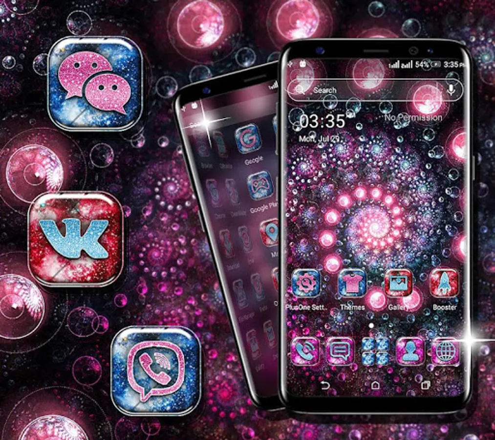 Different launcher (icon packs) - Cool Neon Spiral Circle HD Icon packs within theme to change the whole look of your phone Neon Spiral Circle Theme,Icon pack of mostly used system apps, social chat app & other utility icons packs that suits with this Neon Spiral Circle Launcher Theme.