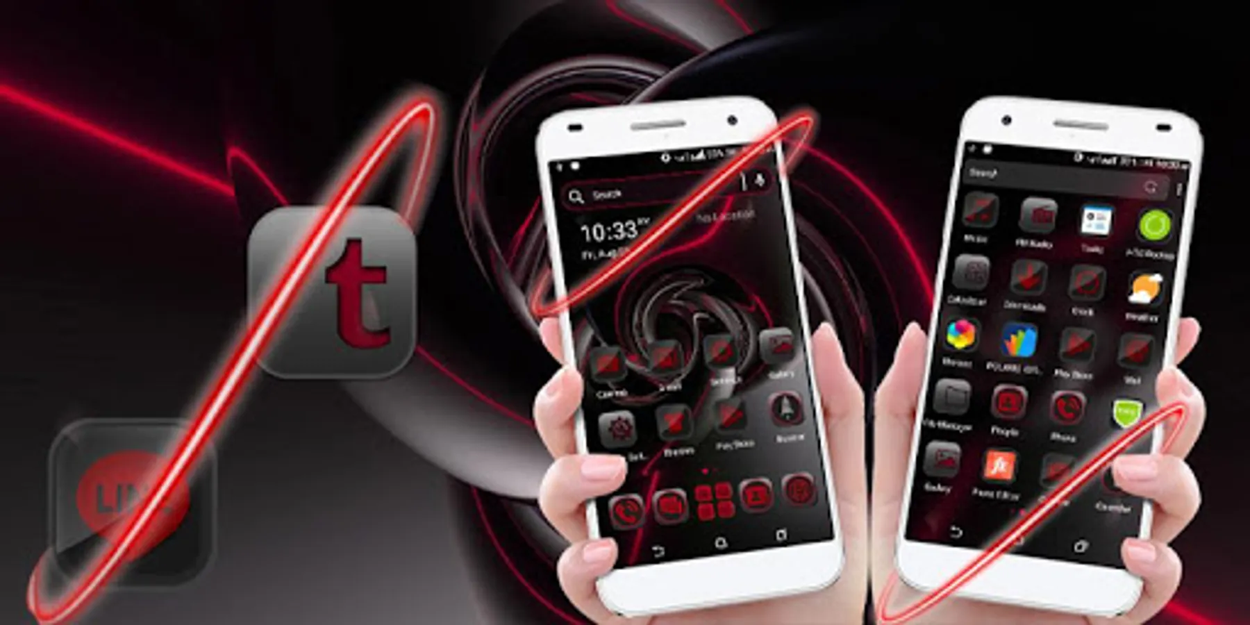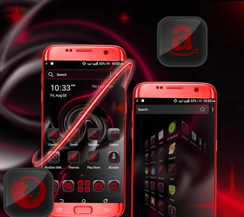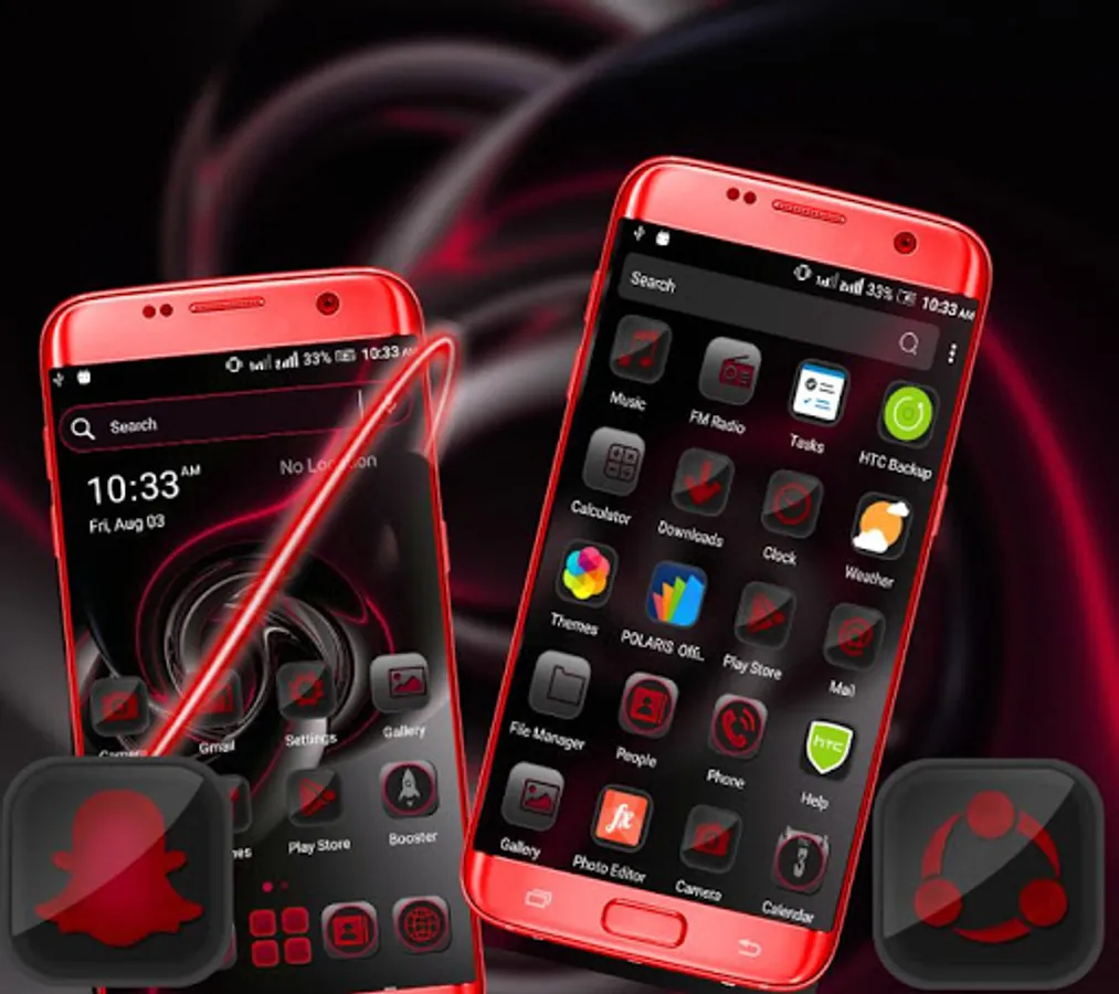 •Different launcher (icon packs) - Cool Red Black HD Icon packs within theme to change the whole look of your phone Red Black Theme,Icon pack of mostly used system apps, social chat app & other utility icons packs that suits with this Red Black Launcher Theme.