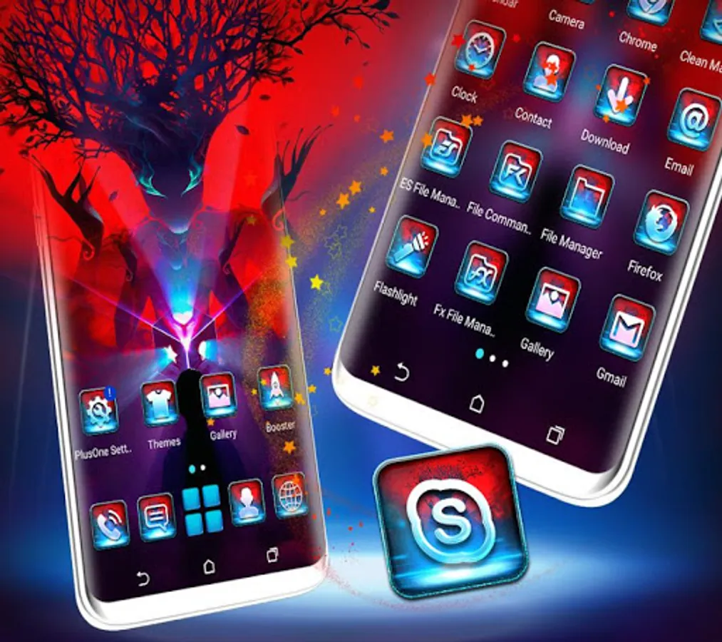 Different launcher (icon packs) - Cool Silhouette Tree Man Icon packs within theme to change the whole look of your phone Silhouette Tree Man Theme, Icon pack of mostly used system apps, social chat app & other utility icons packs that suits with this Silhouette Tree Man Launcher Theme.