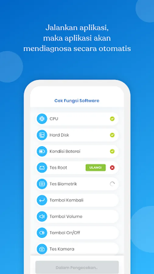 • Klik Mulai dan aplikasi akan memulai proses diagnosa secara otomatis, ikuti tahap yang ada dalam aplikasi hingga muncul harga (valuasi) smartphone kamu.