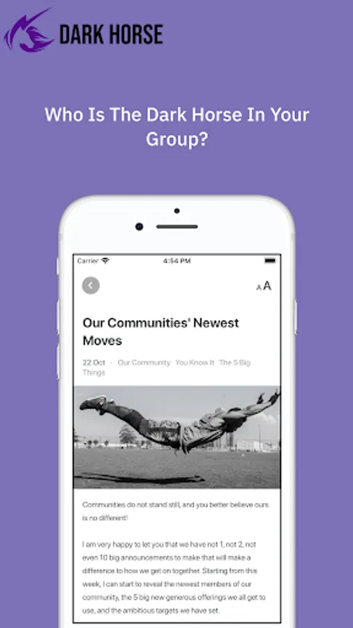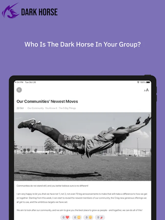The Dark Horse app creates small teams of three friends, committing to three days of Gratitude, Physicality and Generosity.