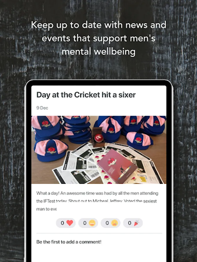 News: Receive a regular stream of good news stories that support men’s mental wellbeing.