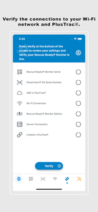 ZOLL RRM allows you to connect, configure, and verify your Rescue Ready® Monitors' settings and connection to a Powerheart® G5 managed by PlusTrac®.