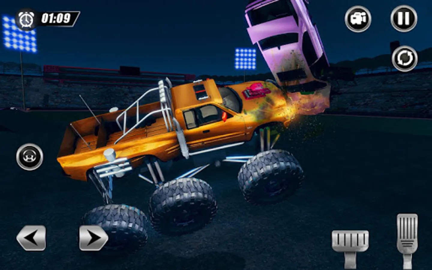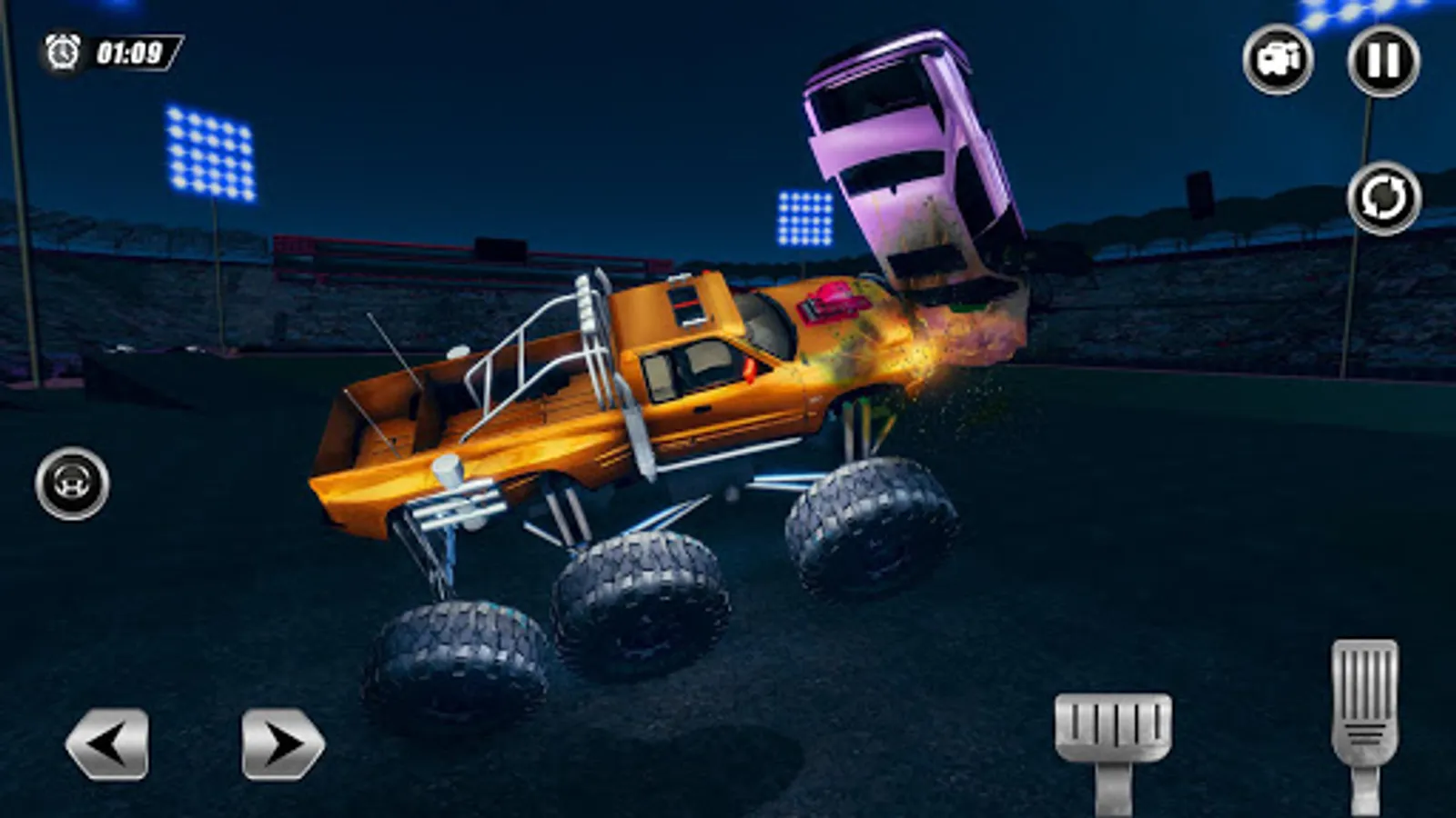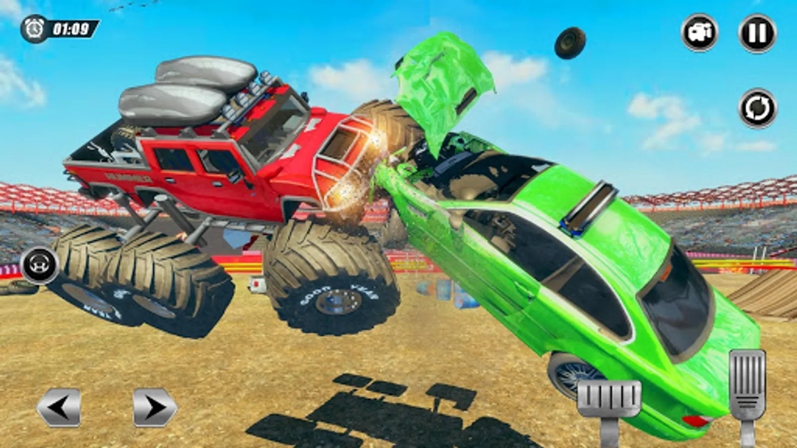 Enjoy the new version of rebound heavy monster truck driving adventure that will take you the new world of demolition battle and become a stunt master of this werkfest derby car vs truck crash simulation by dodging obstacles and cruising fast on mountain ramps. Perform tipping stunts with absolute precision on a trucker vehicle. Be a master truck stunt driver and cruising fast speed on mountain ramps. Challenge your 4x4 monster truck driving skills and reckless driving to highlight yourself as the monster vehicles driving expert.