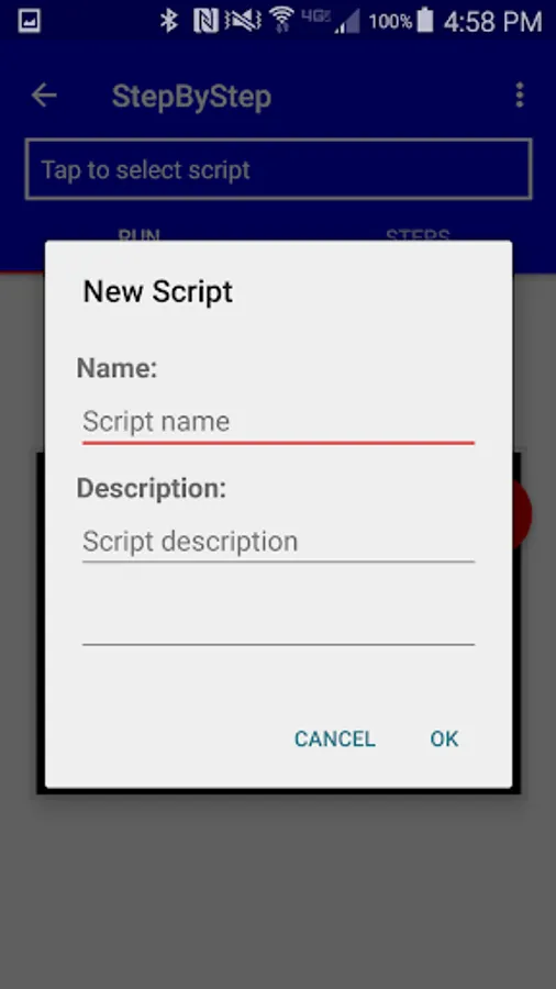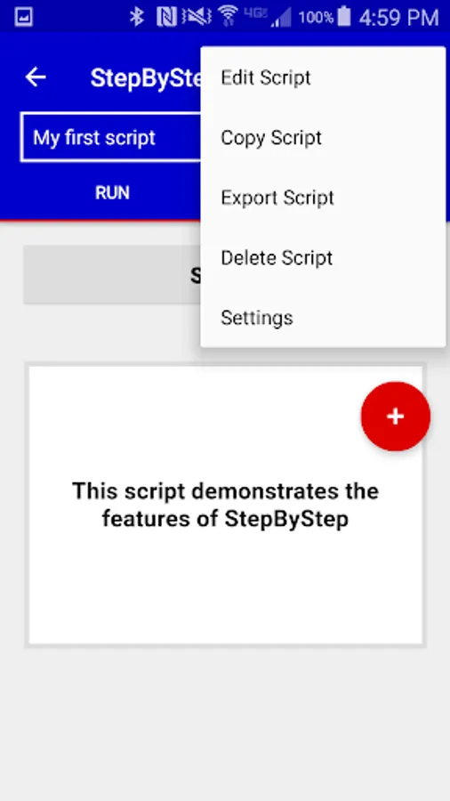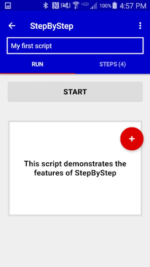 Then run your script. When you press Start, StepByStep reads the first step label and text and waits for you to say "Next". After you've gone to the next step, you can say "Back" to go back or "Next" to go forward. At any time, you can say "Stop" and "Start" to start from the beginning. When you say "Done", StepByStep stops listening for commands and (optionally) sends a notification with the start and stop times.
