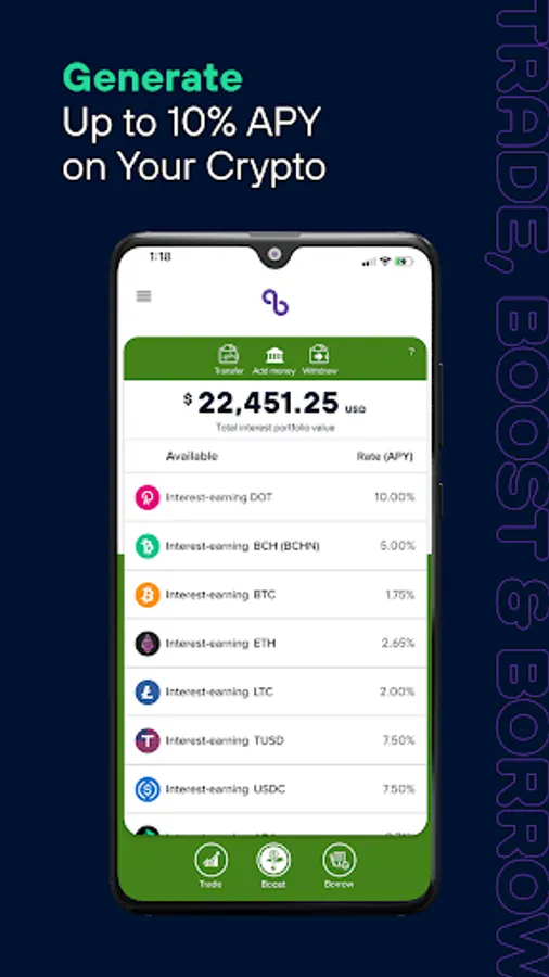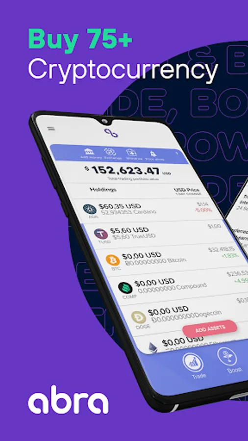 Download the Abra app today to easily and safely buy crypto! As one of the top crypto wallet apps, Abra lets you buy, borrow, and generate interest on cryptocurrencies. Trade Bitcoin, Ethereum, Cardano, Dogecoin, and 75+ other cryptocurrencies. The Abra crypto app is used by more than 2 million people in over 150 countries. Accredited investors can generate up to 10% APY on their crypto with Abra Boost.