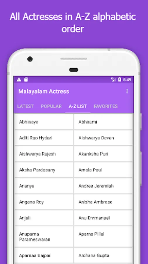 Some of the popular actress pictures which are included in our app is Nazriya Nazim, Nithya Menen, Kavya Madhavan, Meera Jasmine, Manju Warrier, Bhavana, Nayanthara, Shwetha Menon, Namitha Pramod, Mamta Mohandas, Keerthi Suresh, Remya Nambeesan, Lakshmi Rai, Samvritha Akhil, Rima Kallingal, Parvathy Menon, Amala Paul, Gopika, Isha Talwar, Miya, Asha Sharath, Sai Pallavi, Navya Nair, Madonna Sebastian, Asin, Meghana Raj, Anupama Parameshwaran, Ananya, Honey Rose, Niveda Thomas, Priyamani, Malavika Menon, Archana Kavi, Jyothirmayi, Nikki Galrani, Swathi Reddy, Rakul Preet Singh, Nikhila Vimal and so many. We are trying to add more actress pictures daily and the list is being updated.