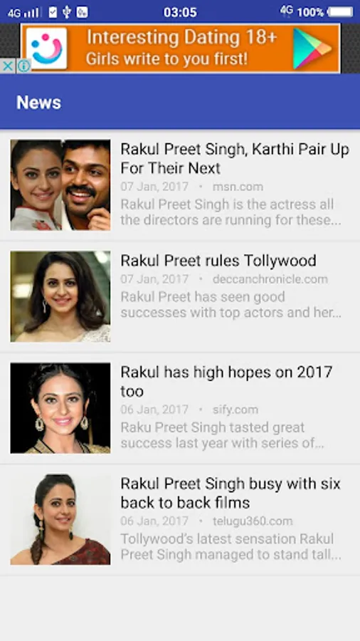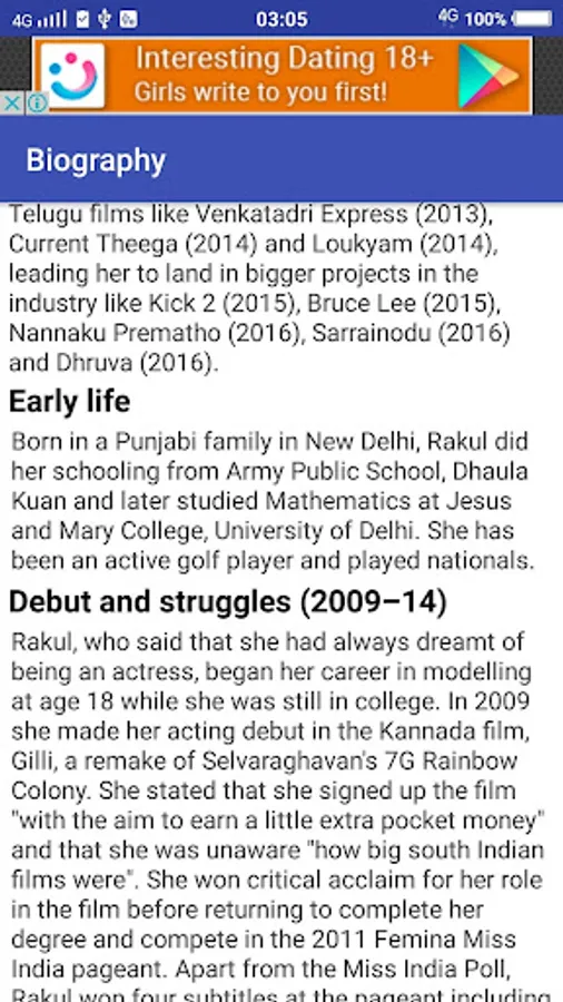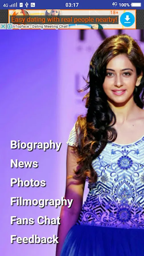 We are happy to announce to all Rakul Preet Singh fans. You can read Rakul Preet Singh's Full Biography, Personal Life, Browser 1000's of high-quality photos gallery and download it without watermark. We also offer a full list of her movies acted which is known as filmography in Tamil, Telugu, Kannada film industry. Also, we are regularly updating news from leading websites related to her. A unique feature we introduced is "Fans Chat" here you can chat with other fans or users. This app is a beta release, so kindly bear with bugs and use feedback button to send suggestions/bugs/suggestions. Keep supporting us and share to your friends.