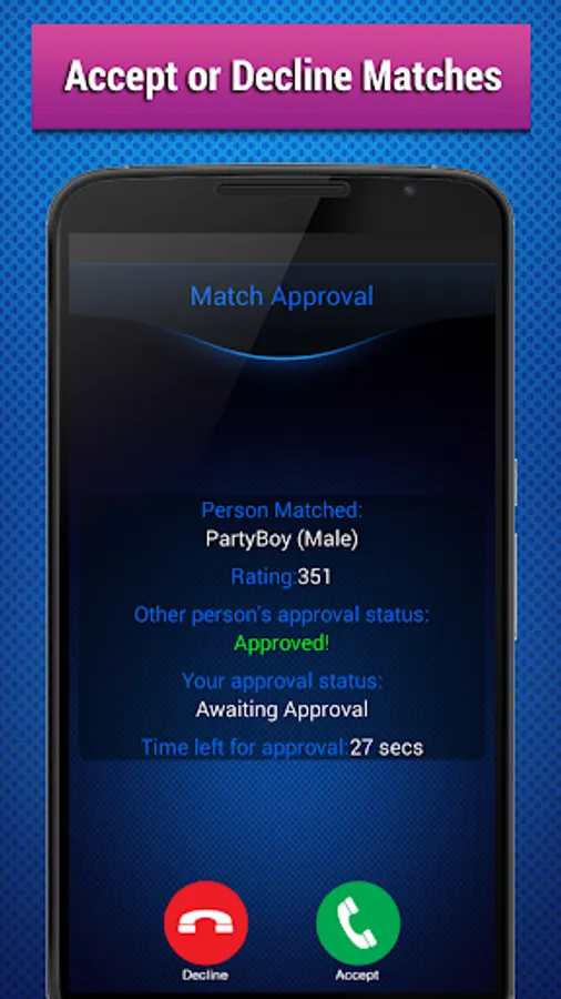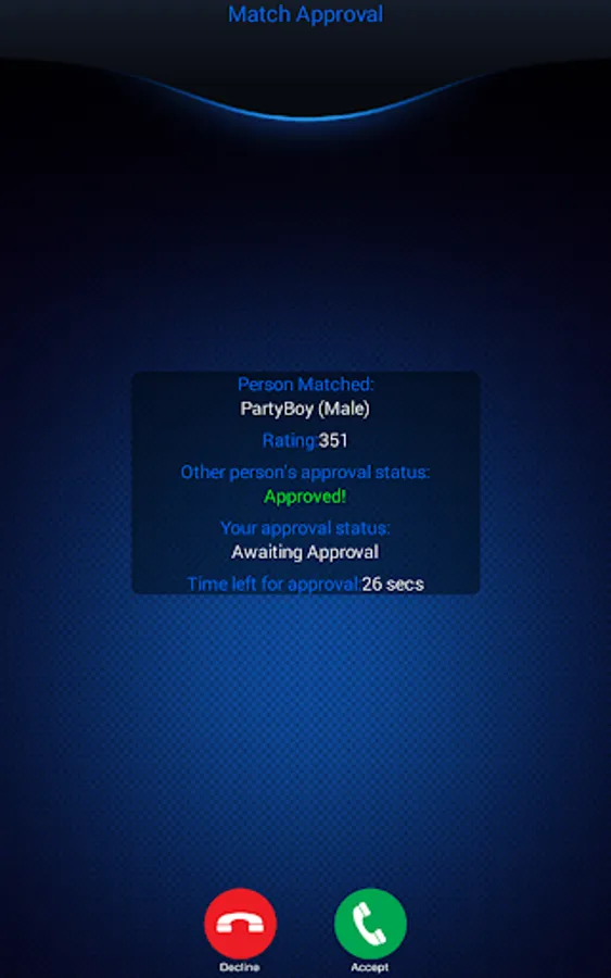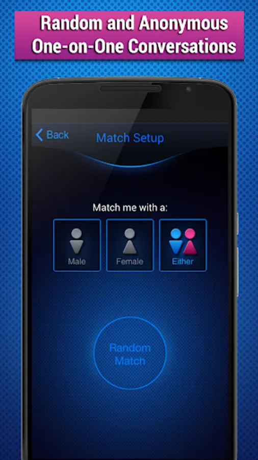 • Completely anonymous – Other than your age, the app collects no personal information and the person you match with has no personal information about you, not even your phone number, name, or email.