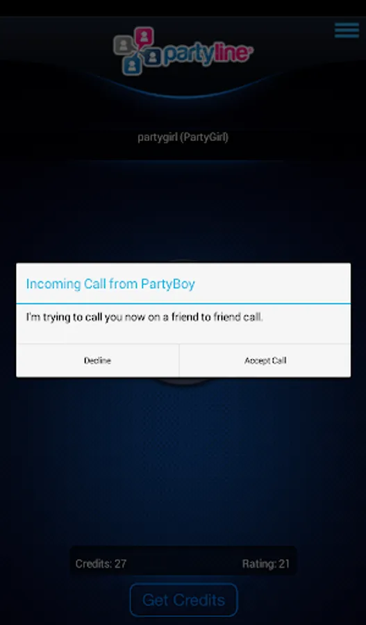 PartyLine randomly and anonymously connects you with people in a live one on one voice chat. Search by gender. Lets talk!